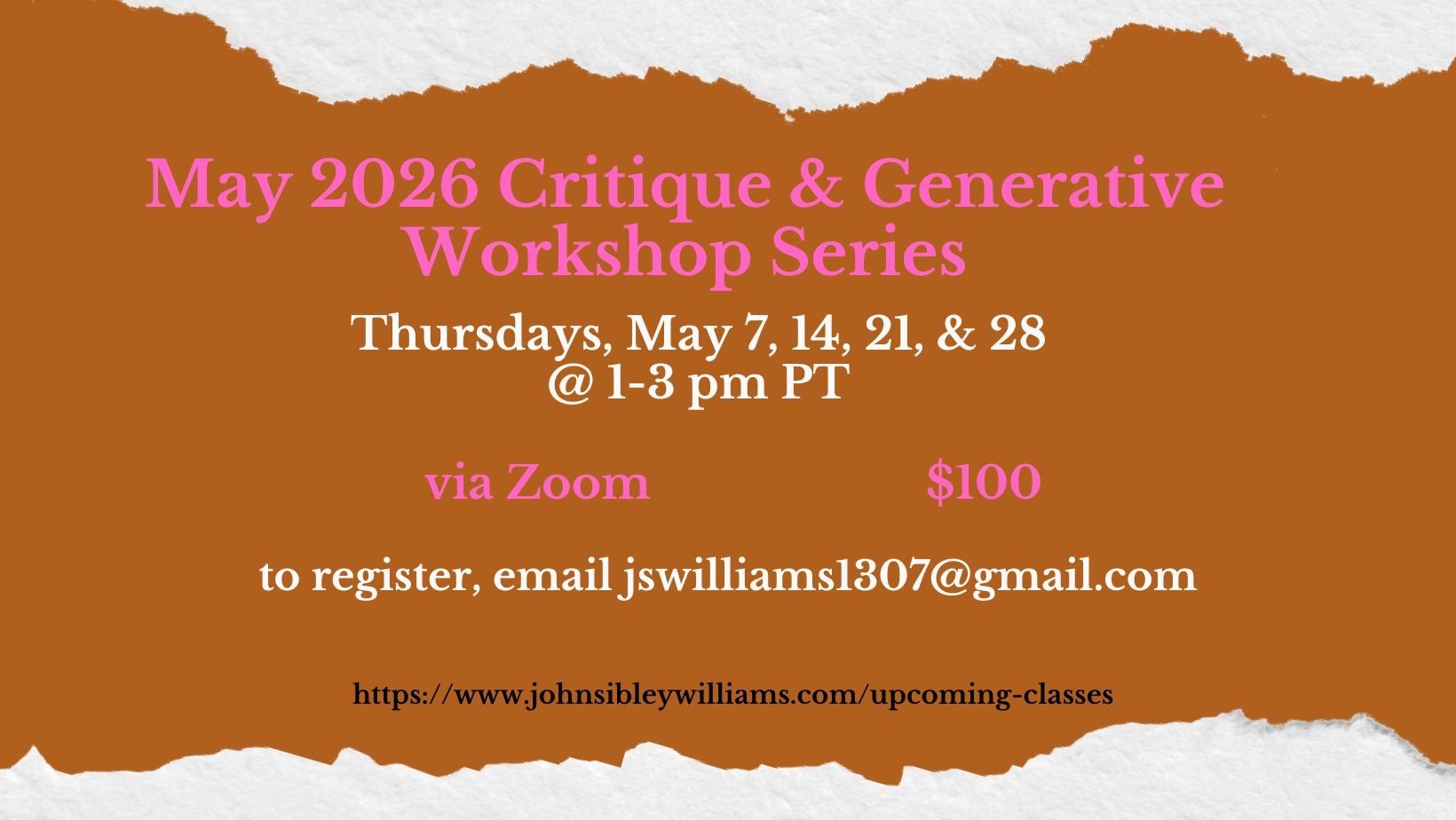 Unless otherwise noted, all workshops are held via Zoom.