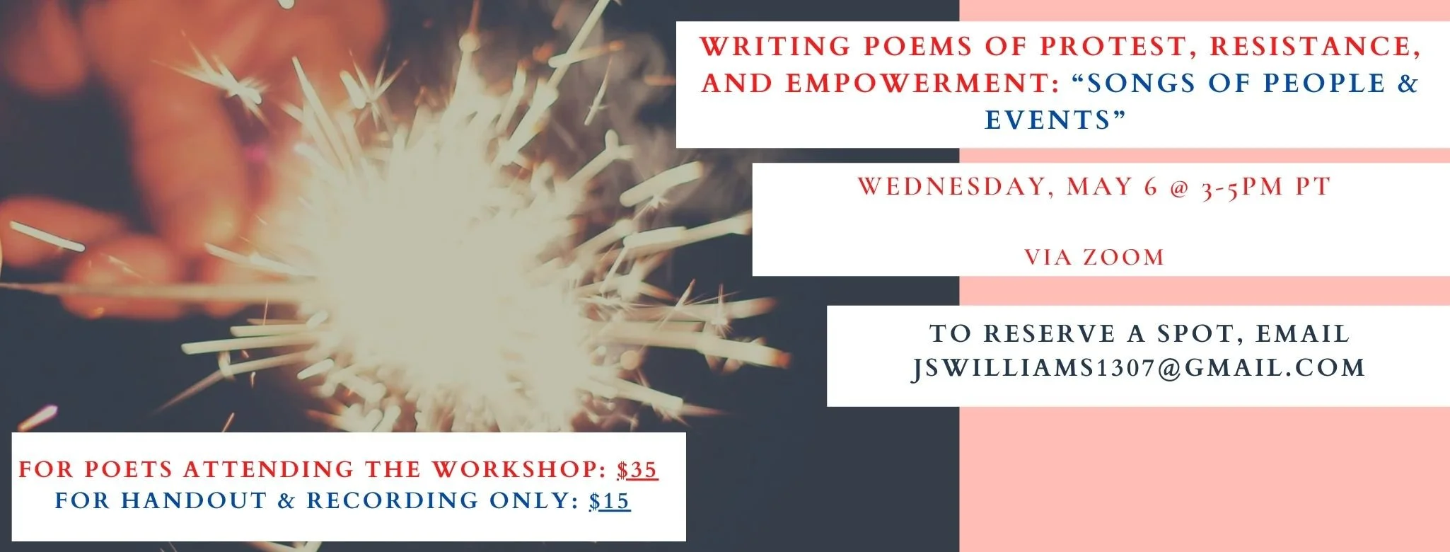 Please email jswilliams1307@gmail.com to register.